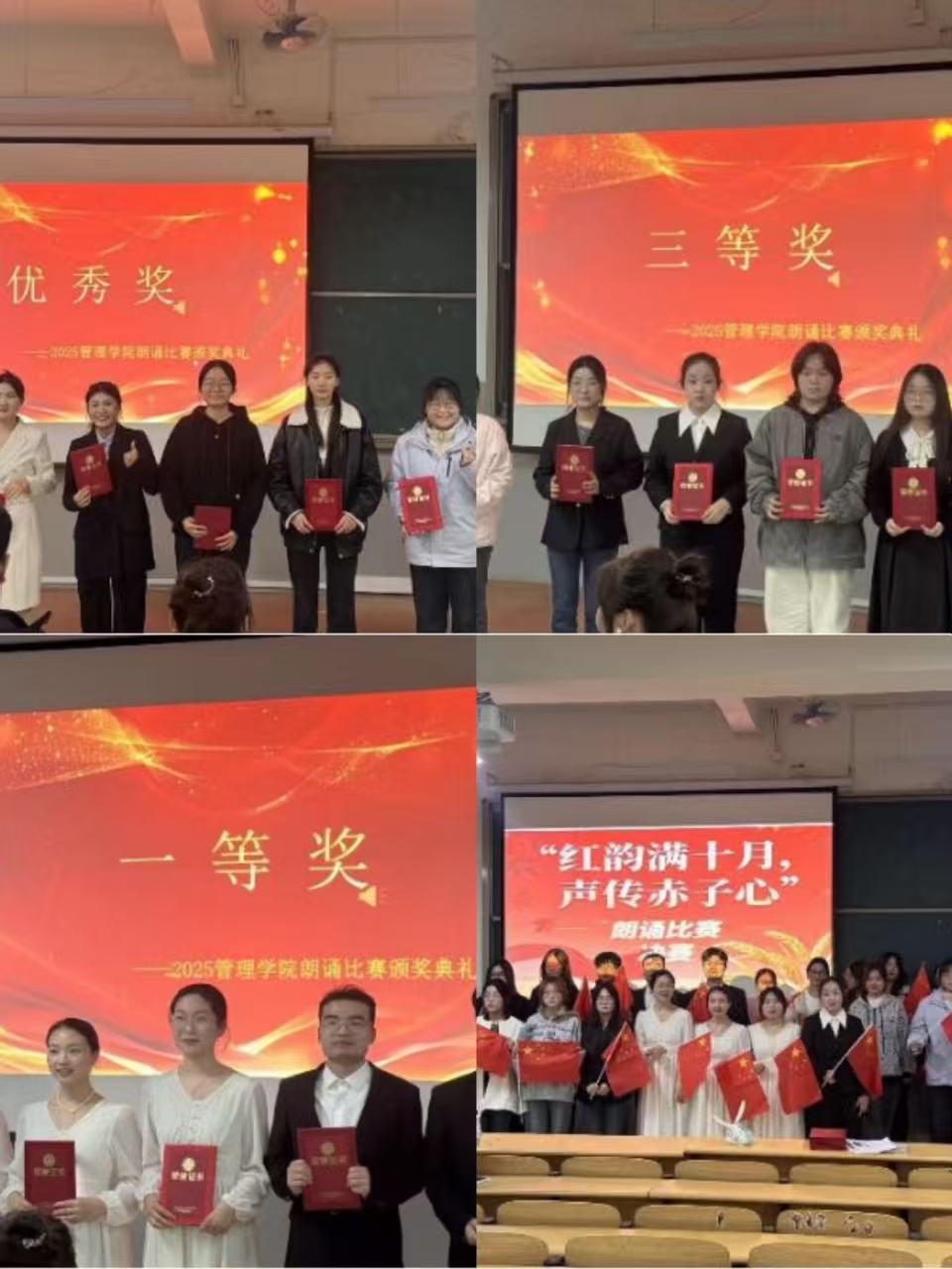 10月23日晚,学院在德润楼成功举办“红韵满十月,声传赤子心”朗诵比赛。现场诗韵激荡、掌声雷动,来自各年级的十三组参赛选手以声传情、以诵言志,为师生呈现了一场震撼心灵的红色文化盛宴,充分展现了新时代青年“我与祖国共成长”的坚定信念和“强国有我”的青春担当。