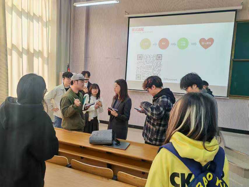 现场互动交流环节中同学们热情高涨,纷纷围绕岗位细节、工作内容、职业发展等问题展开深入沟通,两位企业导师耐心解答每一个问题,为同学们提供专业的指导与建议。随后,焦墙代表上海自如公司现场对符合条件的学生依次进行面试,通过提问交流,全面考察学生的专业素养、综合能力及职业匹配度。整个面试过程井然有序,准毕业生们充分展现了管理学院学子的良好精神风貌与专业素养,得到了面试官的高度认可。