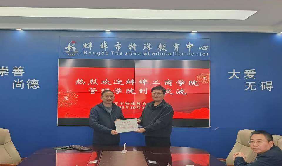 与此同时,阮进兵书记、赵骏书记与蚌埠特殊教育中心领导围绕今后合作交流事宜展开深入探讨。双方一致表示,将进一步加强沟通协作,整合资源优势,共同为特殊儿童的健康成长、全面发展搭建更好的平台,贡献更多力量。活动最后,蚌埠特殊教育中心向管理学院授予爱心证书,以表彰学院此次爱心之举,感谢学院为特殊儿童带来的温暖与关怀。