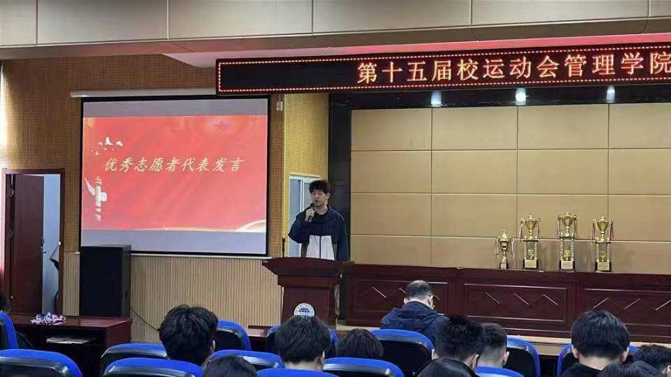 在代表发言环节,双料冠军朱健、女子400米冠军魏文静作为优秀运动员代表,分享了他们力搏极限、为院争光的心路历程;优秀志愿者代表李昌恒讲述了幕后服务中的温暖与坚守;优秀演职人员代表夏程程回顾了开幕式大型表演《龙狮献瑞 棒舞五育》从艰苦排练到震撼全场的精彩瞬间。他们的发言,是学院青春力量最生动的注脚。