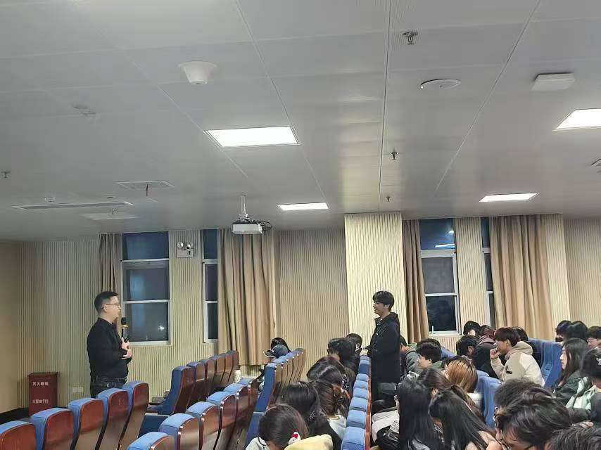 11月7日,工商管理系教学实践月活动迎来一场思想盛宴。当晚19:00至20:40,知名连锁茶饮品牌“甜啦啦”高级讲师孙忆杰先生应邀莅临图书馆第一报告厅,为选修《连锁经营》课程的同学们带来了一场题为《连锁餐饮品牌市场拓展的底层逻辑》的精彩讲座。23工管1班、2班及24工管专1班、2班逾180名学生齐聚一堂,现场座无虚席,气氛热烈。