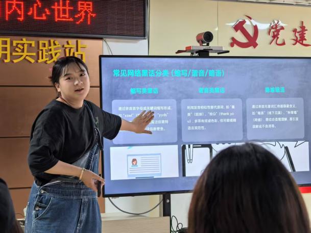活动伊始,大学生们在社区活动室齐聚一堂,认真聆听了此次讲座。演讲者通过PPT讲解的形式,深入浅出地为大家揭示了网络世界中流行的“黑话”背后的含义与潜在风险,引导同学们正确理解网络文化,警惕网络陷阱。