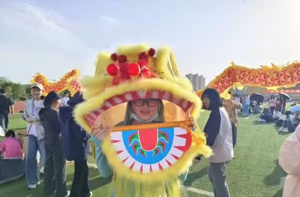 精彩的表演结束后,活动迎来了高潮环节——互动体验。在舞龙舞狮队队员们的耐心指导下,现场师生们纷纷踊跃报名参与。大家在队员的示范下,小心翼翼地拿起舞龙道具,尝试着舞动龙身,感受舞龙的韵律与力量;或是戴上狮头,模仿着队员们的动作,体验舞狮的灵动与活力。尽管动作略显生疏,但每个人都全身心投入,脸上洋溢着对传统文化的热爱与好奇。