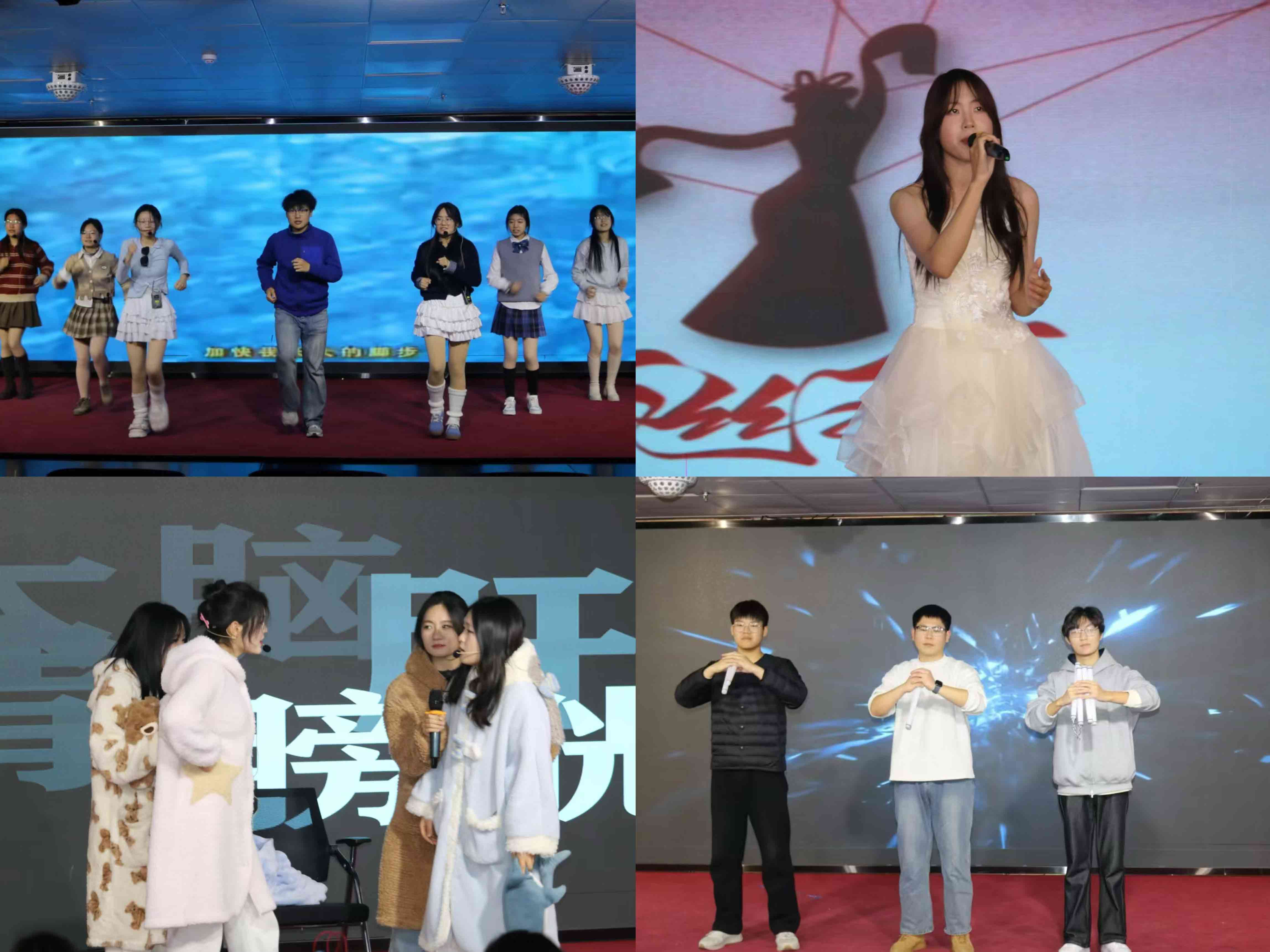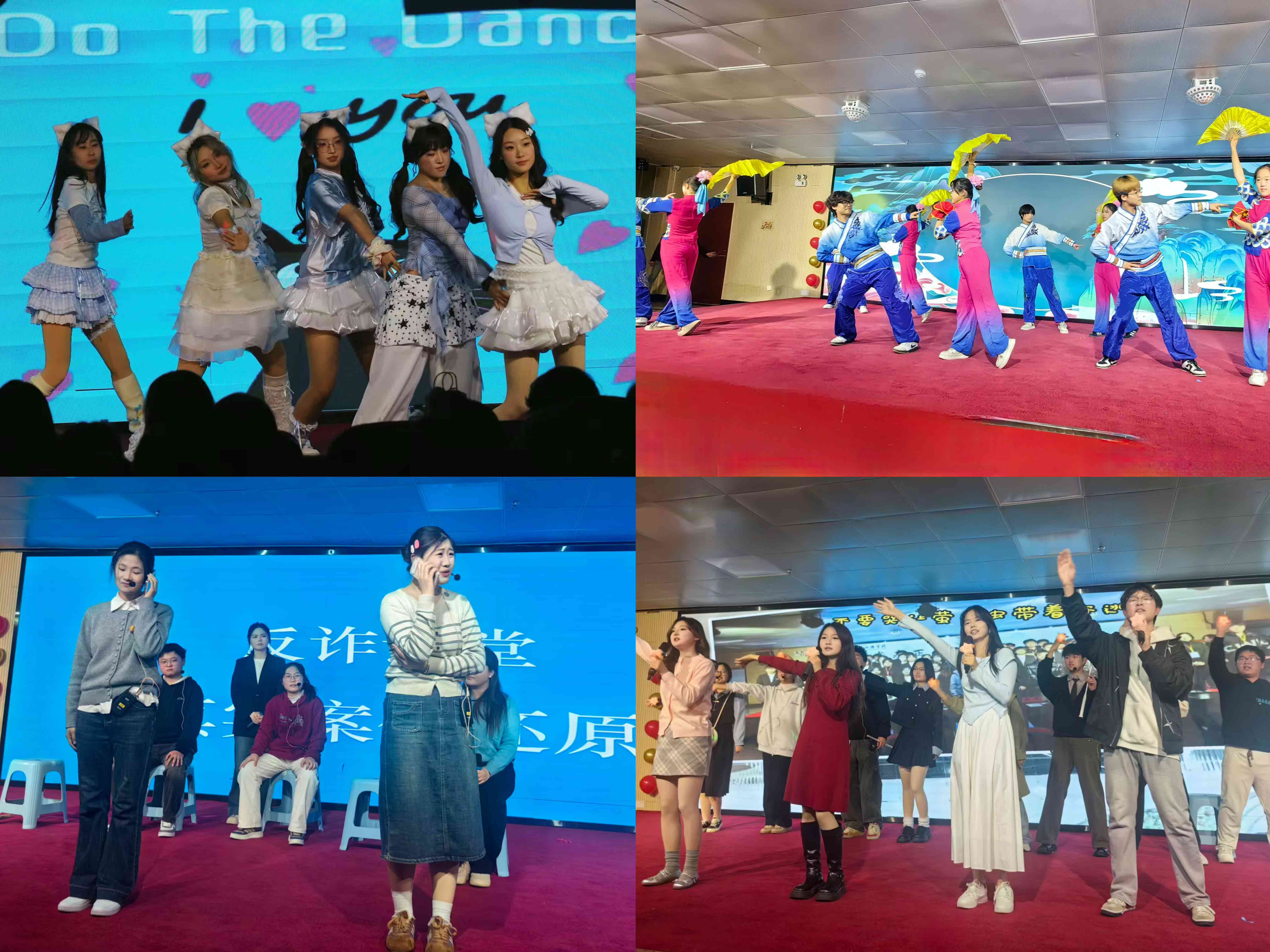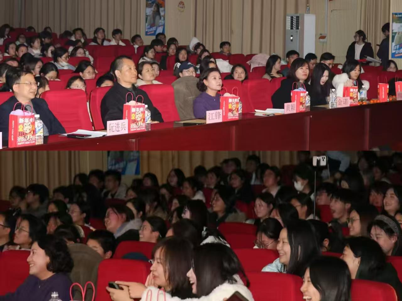 整场晚会掌声、欢呼此起彼伏。台上演员全情投入,台下师生热情互动,共同沉浸在这场温暖而充满活力的学院盛宴中。