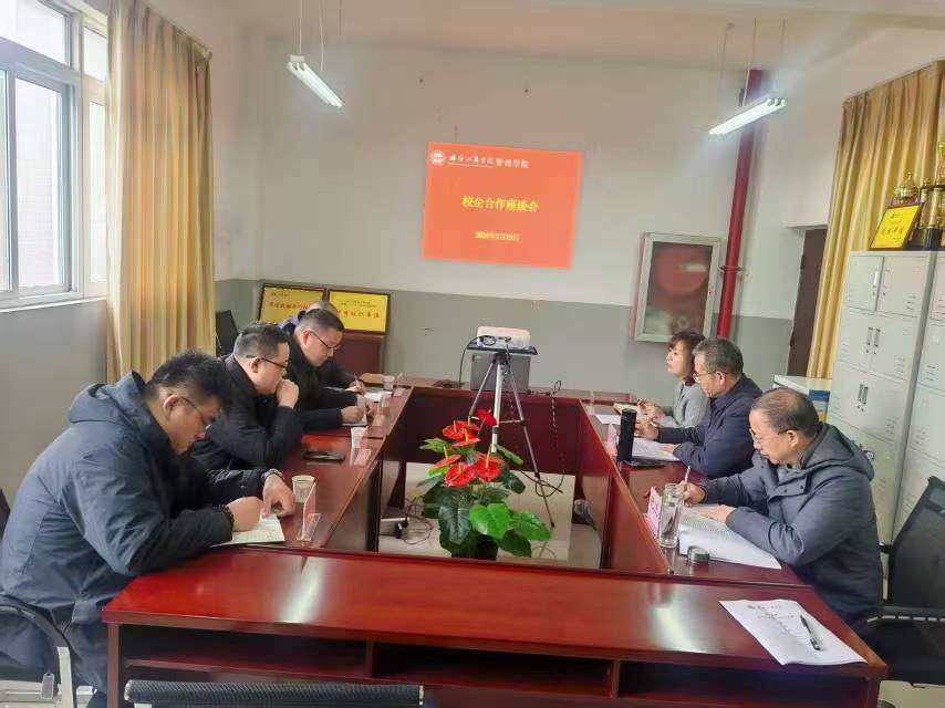 汪金龙对安徽联通蚌埠分公司一行的到来表示热烈欢迎,希望合作双方能够在人才培养方案制定、专业建设与发展、学生实习实训安排以及就业推荐等方面开展全方位、多层次的合作。杨传宝介绍了蚌埠联通分公司的基本情况与核心业务布局,传递企业发展布局与人才岗位需求,希望进一步与学院深化合作,共同培养高素质、应用型的管理型专业人才,为行业的发展贡献力量。