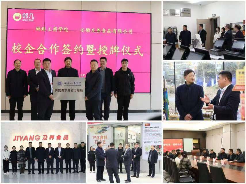 4日下午,刘福成一行实地走访参观了安徽邻几便利店有限公司及合肥及养食品有限公司的一线生产车间,并召开了校企合作座谈会,举行了实践教学及实习基地授牌仪式。会上,企业代表介绍了发展概况与人才需求,校方介绍了办学特色与人才培养等情况,双方还就下一步深度合作进行了深入交流。3名学生代表汇报了在企业工作和实习情况。刘福成充分肯定了企业发展速度、规模和效益,强调要继续加强校企深度合作,协同共育应用型人才,并鼓励学生要继续做好“六个坚持”,融入企业文化;不断学习,向同事、优秀员工和企业学习;经受考验,吃苦耐劳,在磨练中成长。