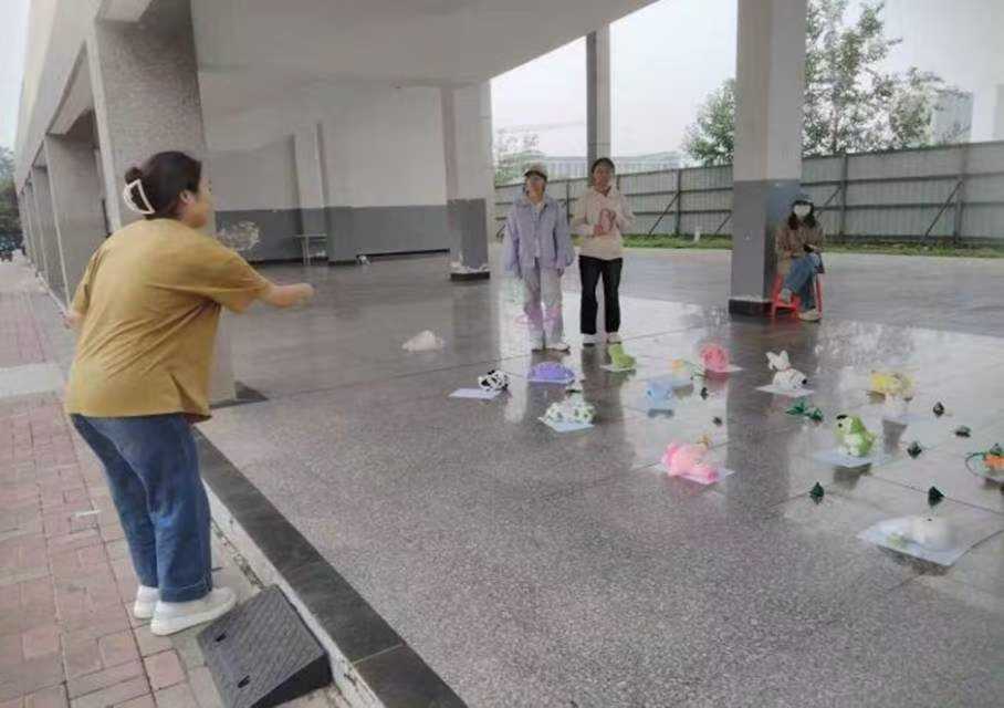一片热闹非凡的景象中,团队接力套圈游戏区域格外引人注目。操场上,摆放着粽子挂件,每一个五彩斑斓的粽子挂件都承载着端午的美好寓意。团队成员们早已摩拳擦掌,跃跃欲试。随着裁判一声令下,队员们便迅速拿起套圈,目光紧紧锁定前方目标,套圈如离弦之箭般飞了出去。现场热闹非凡,欢呼声、加油声此起彼伏。大家都沉浸在这场充满趣味与挑战的端午接力套圈游戏中,感受着团队协作的力量以及传统节日带来的欢乐。