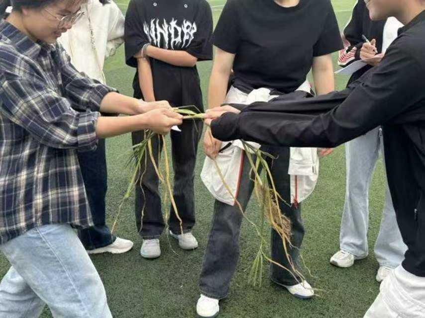 50米的赛道上,一边放着代表“麦穗”的道具,另一边则是“稻苗”种植区域。随着裁判哨声响起,团队的第一位成员迅速拿起“麦穗”,如离弦之箭般冲向对面。到达后,将“麦穗”传递给队友,接着拿起“稻苗”道具种在指定区域。队友们争分夺秒,配合默契。现场加油声此起彼伏,大家都为了团队的胜利全力以赴,将活动气氛推向高潮。