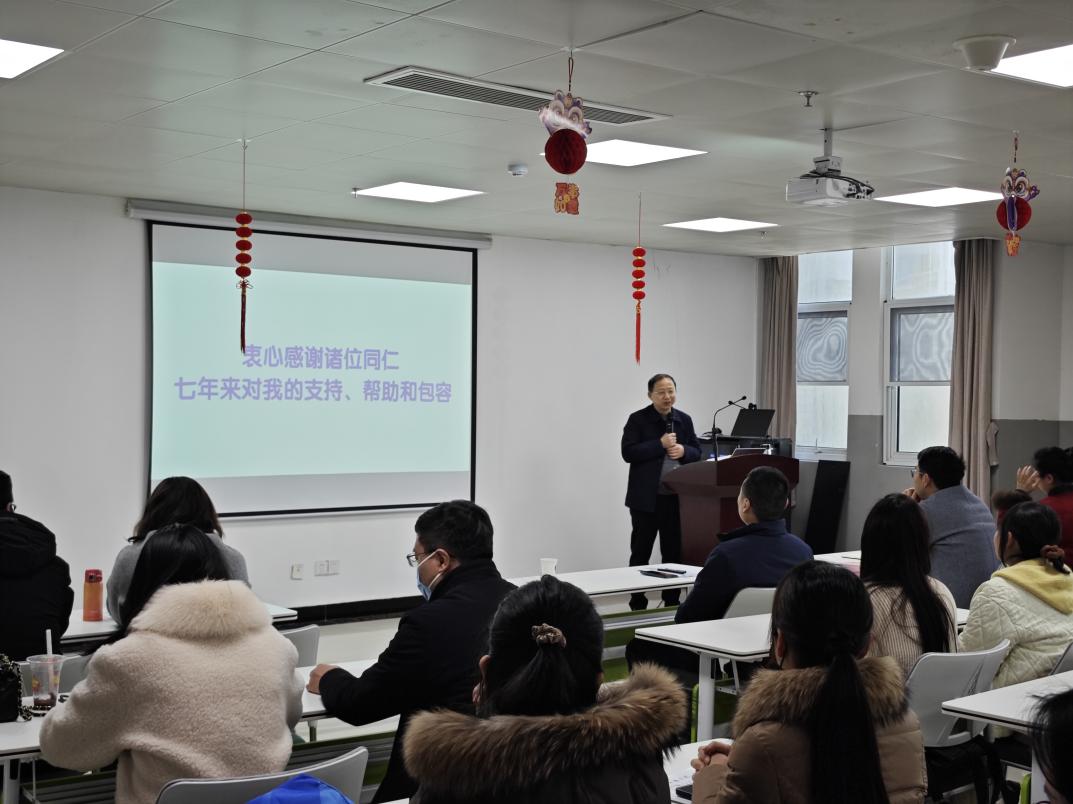 分享结束后,阮书记进行了高度评价。他指出,这不仅是“七年之痒”,更是“七载深根与坚守”。阮书记赞誉刘院长是一位“有思路、有温度、有格局的卓越管理者”,在底色中默默奉献,在细微处体现担当。他代表全体师生向刘院长七年来的辛勤付出与开创性贡献表示衷心感谢,并号召全体教职工在新的发展阶段继续砥砺前行。