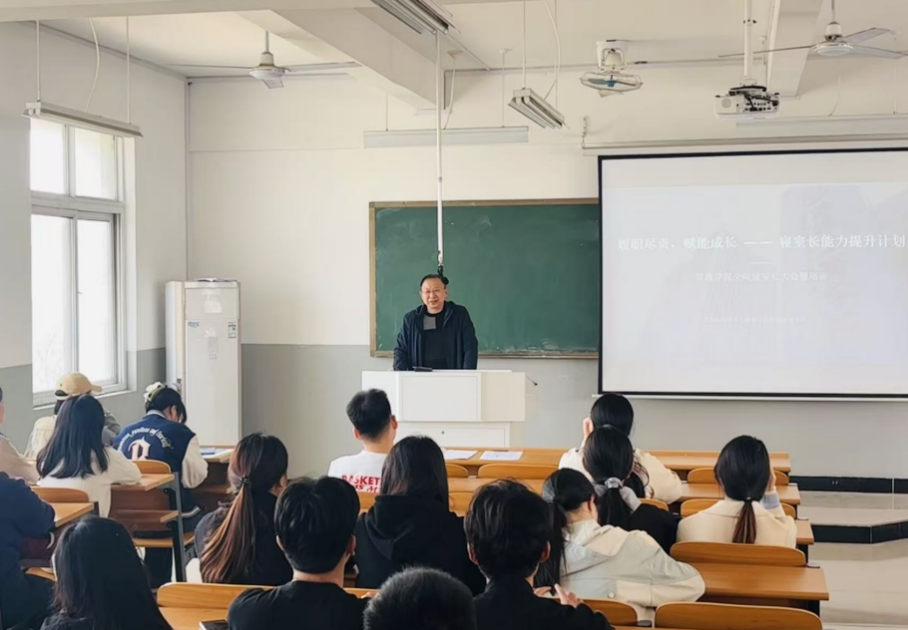会议伊始,学院党总支书记阮进兵作开场讲话。他结合当前校园安全稳定形势,对全体寝室长提出了四点殷切希望:认真履职尽责,当好服务表率,寝室长要明确自身角色定位,提供优质服务,加强与室友、辅导员的沟通协调,做好上传下达的桥梁;强化规则意识,共建公约文化,要将“我约定”转化为“我遵守”,带头落实卫生分工和公共消费记录制度,用制度约束行为,用规则维护秩序;公正处理矛盾,注重沟通化解,在处理寝室内部矛盾时要做到不站队、不偏袒,忌讳因私人关系而失公,发现苗头性问题要及时介入,通过沟通协调妥善处置,严防隐患升级;严于律己,发挥头雁效应,要以身作则,带头遵守学校的各项规章制度,在学风建设、寝室文明中率先垂范。